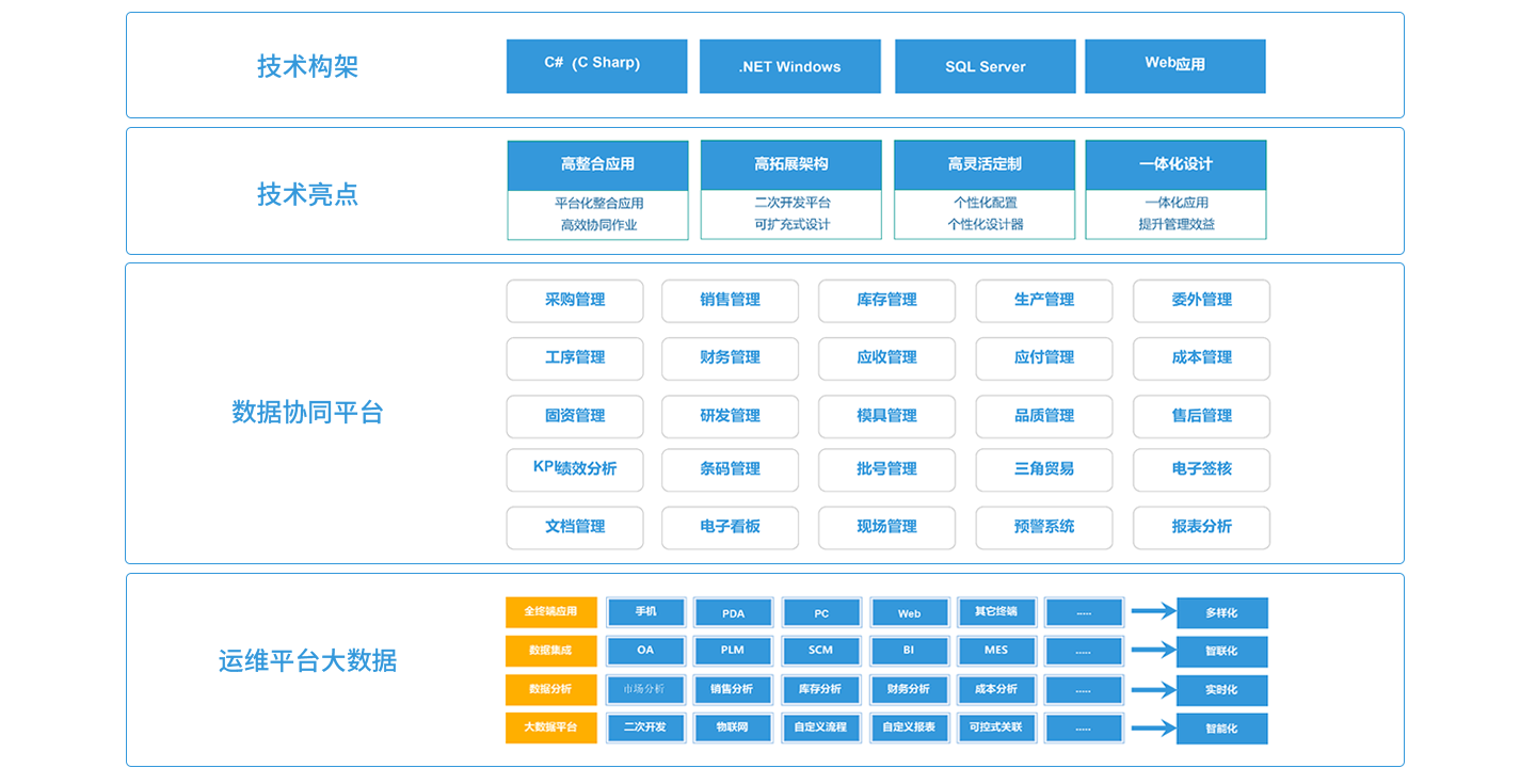 打破信息孤岛,建立企业信息数据交流,实现资源共享,信息数据统一,让使用者能够及时掌握各个层面的信息,同时每个部门、每个岗位犹如在一个部门内工作